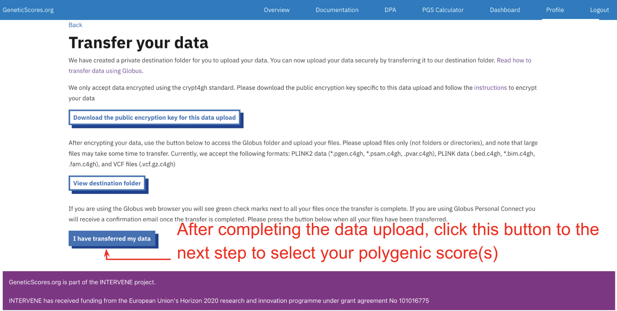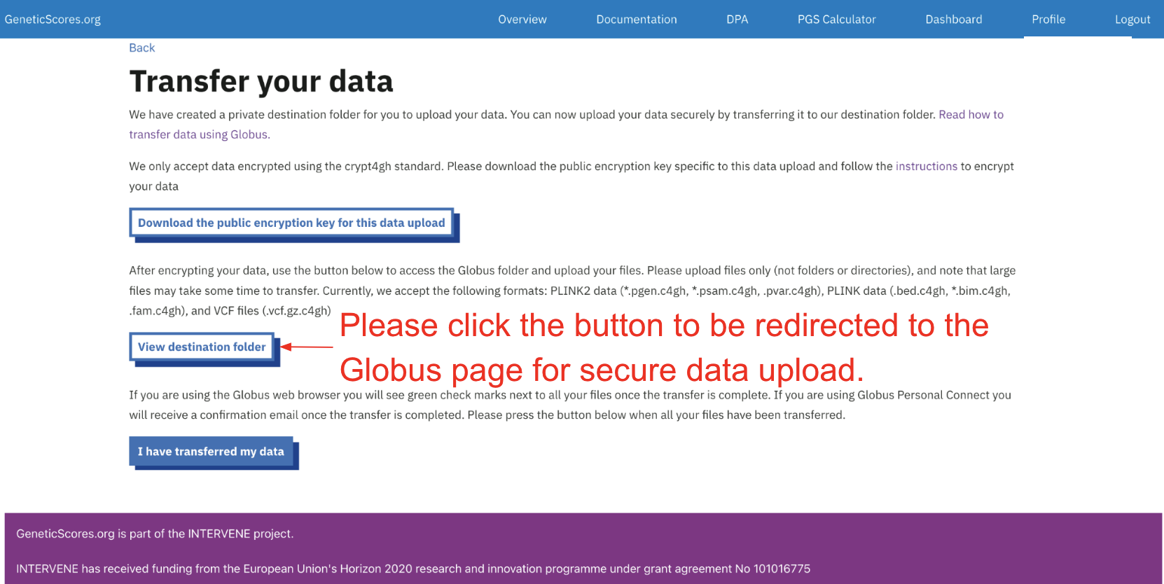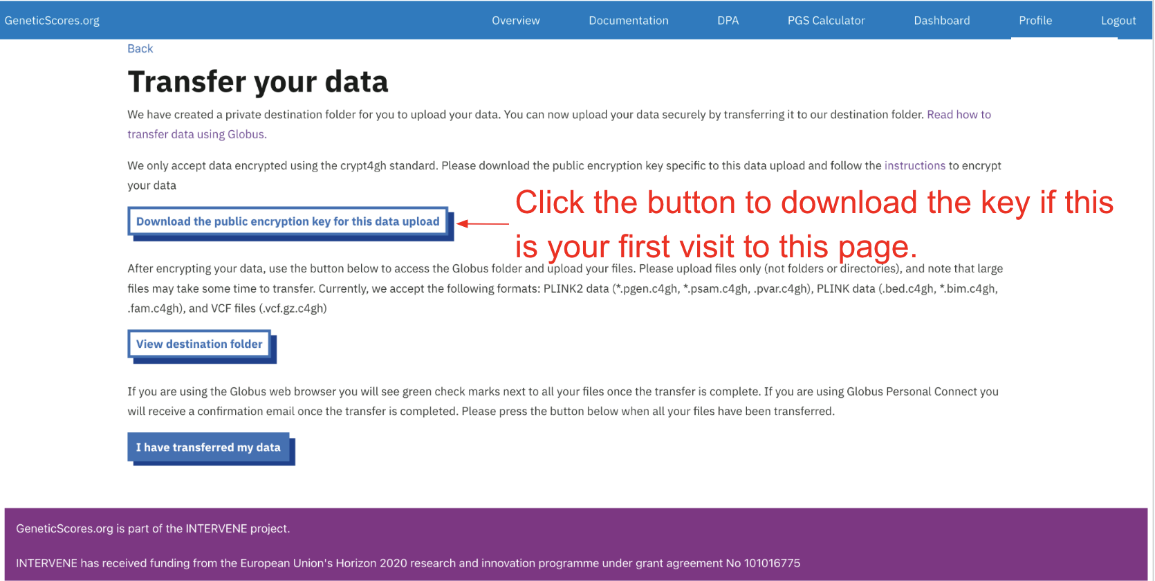 To keep your data safe, please follow these instructions to encrypt your data using the key and only upload encrypted data.