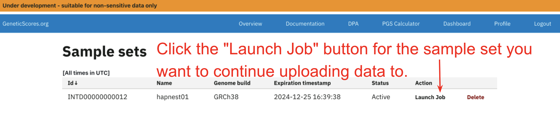 2. Find the sample set you want to continue to upload data