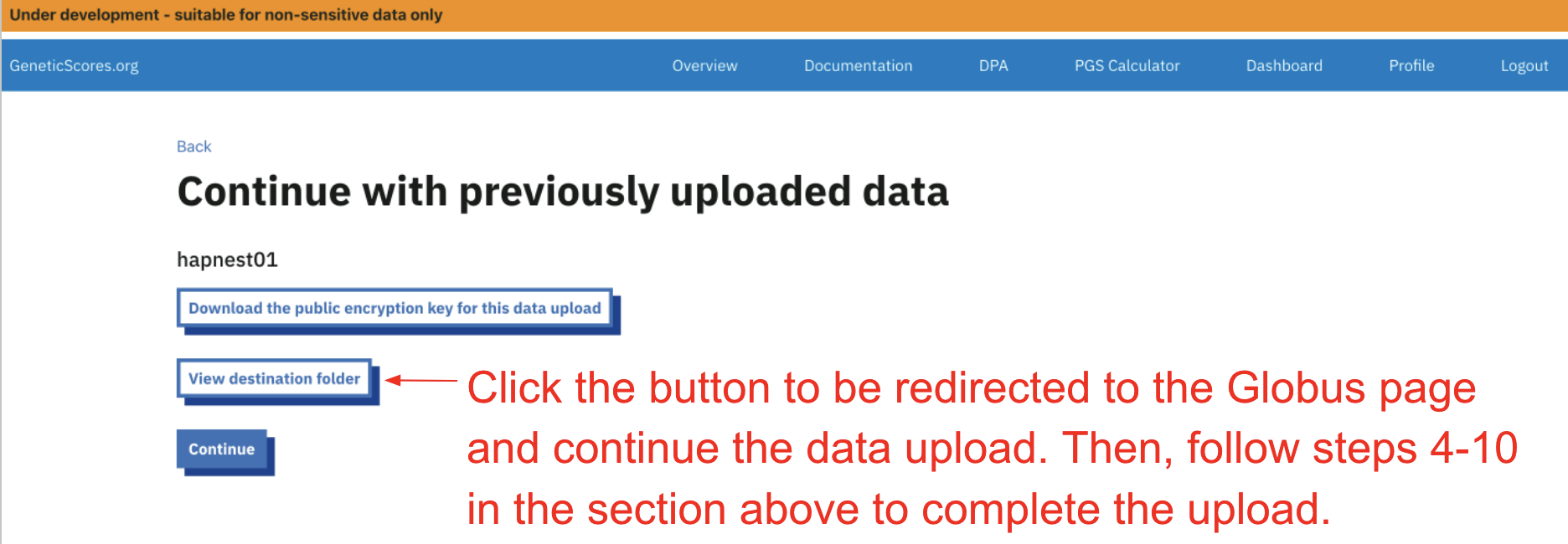 How to resume data upload if you accidentally exit the Globus upload page