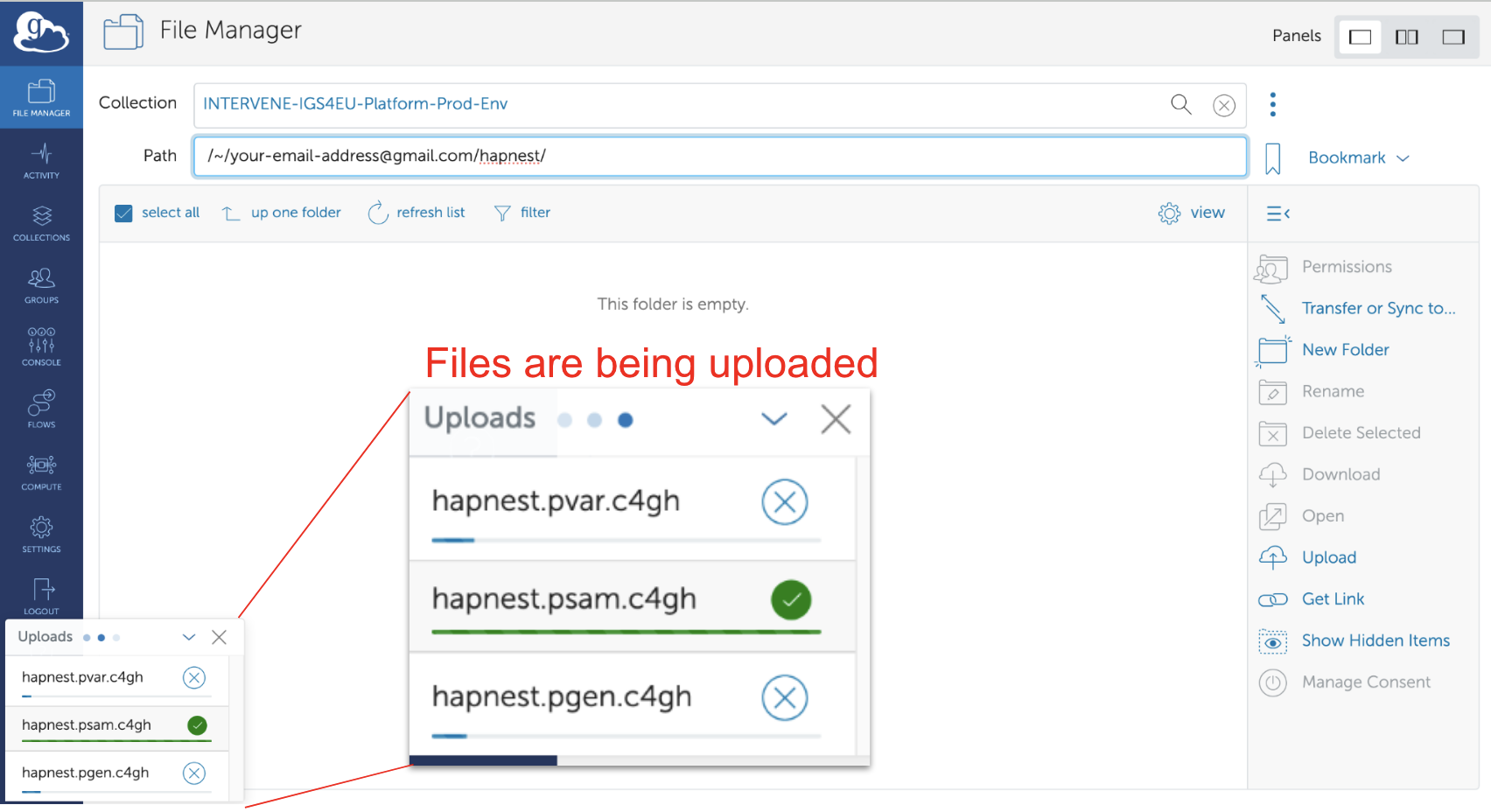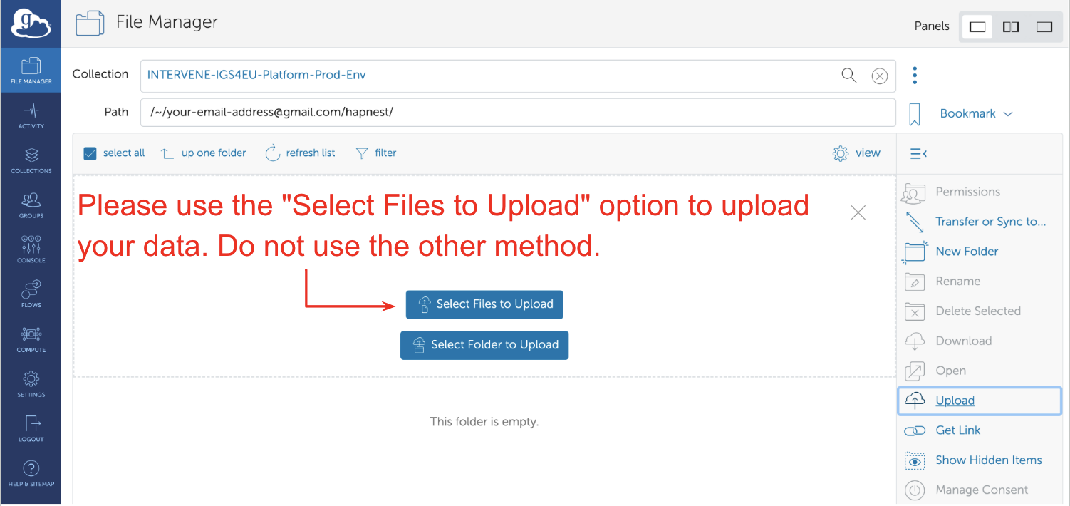 In other cases it may be better to upload data with the Globus Connect Personal application.